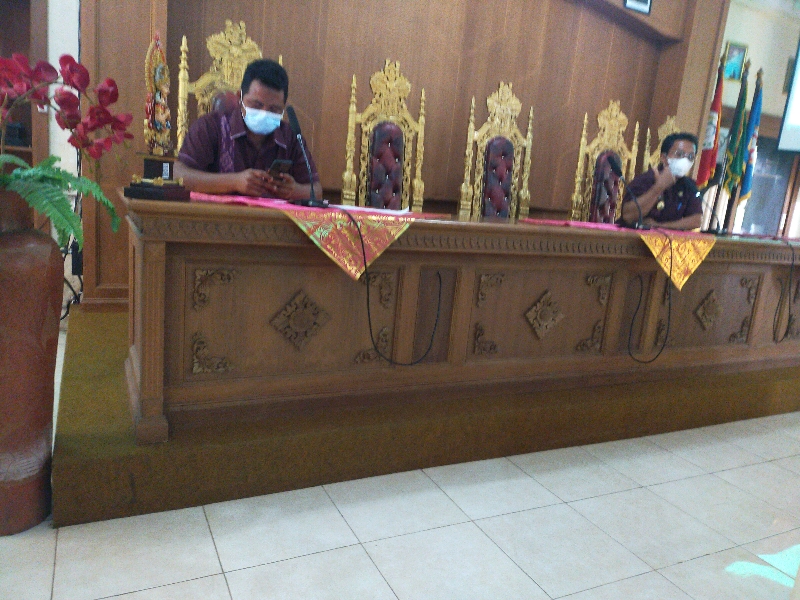 Pelaksanaan evaluasi APBDes Perubahan ketiga tahun 2020 bersama Perbekel dan jajaran, oleh tim dari DPMD, inspektorat, dan Kemenkumham. |